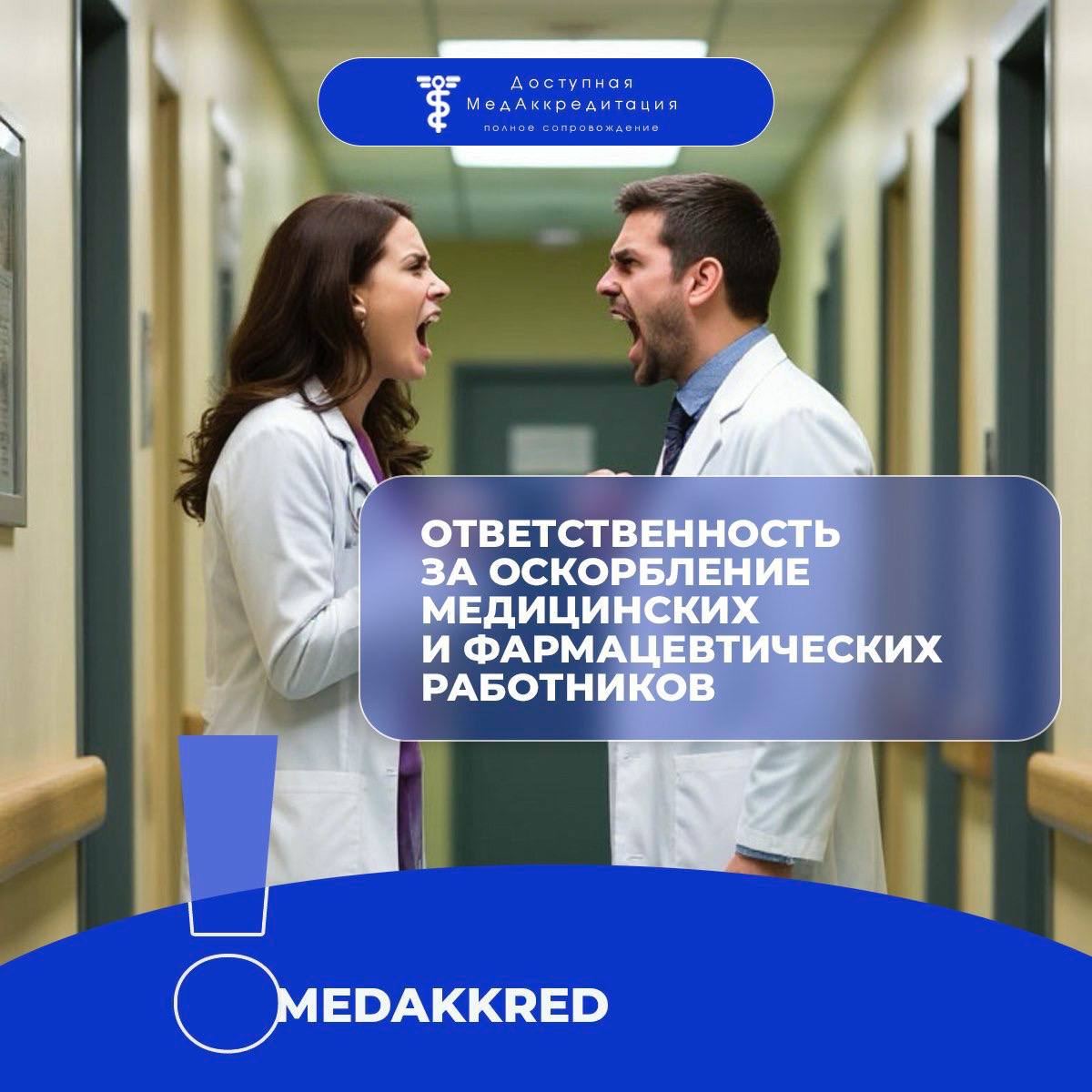 ⚡️Новая статья в КоАП РФ «Ответственность за оскорбление медицинских и фармацевтических работников» 📣Депутаты внесли в Госдуму ЗАКОНОПРОЕКТ, которым предлагается добавить в КоАП РФ статью 5.61.2 — «Оскорбление медицинского или фармацевтического работника» - оскорбление, то есть унижение чести и достоинства медицинского или фармацевтического работника при исполнении им своих должностных обязанностей или в связи с их исполнением, выраженное в неприличной или иной противоречащей общепринятым нормам морали и нравственности форме. 💰Законопроектом предлагается ввести за такое нарушение следующие штрафы: • от 5 тыс. до 20 тыс.руб. для граждан; • от 50 тыс. до 100 тыс.руб. для должностных лиц; • от 200 тыс. до 500 тыс.руб. для юридических лиц. За повторное нарушение: • от 20 тыс. до 40 тыс.руб. для граждан; • от 100 тыс. до 200 тыс.руб. для должностных лиц; • от 500 тыс. до 600 тыс.руб. для юрлиц. 📣В случае публичного оскорбления, в том числе в СМИ и интернете, мед- или фармработника, предусматриваются штрафы: • от 10 тыс. до 30 тыс.руб. для граждан; • от 100 тыс. до 200 тыс.руб. для должностных лиц; • от 500 тыс. до 700 тыс.руб. для юрлиц. За повторное нарушение: • от 30 тыс. до 50 тыс.руб. для граждан; • от 200 тыс. до 300 тыс.руб. для должностных лиц; • от 700 тыс. до 800 тыс.руб. для юрлиц. Введение данной ответственности будет способствовать формированию уважительного отношения к мед- и фармработникам, укреплению их социального статуса и обеспечению безопасности их профессиональной деятельности. Пишите мнение в комментариях! 👇👇👇 _____________ Бесплатная консультация по периодической аккредитации и аттестации: 1 Звоните 8 (848) 237-94-45 2 Пишите в WhatsApp/Telegram 89913962958 3 Пишите на почту nmfosale@med-akkred.ru 4 Пишите сообщения в сообщество vk.com/med_akkred